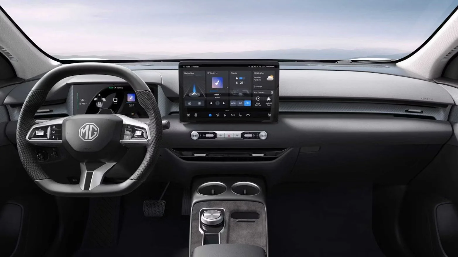 MGS5 EV leveres med trådløs Apple CarPlay™- og Android Auto™-tilkobling som standard. Det gjør det enkelt å bruke funksjoner fra mobiltelefonen på HD-berøringsskjermen i bilen.